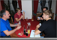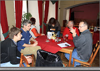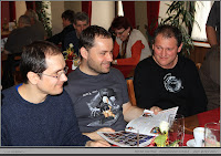 Na sobotu potom bylo naplánováno několik zajímavých výletů, Bohužel vzhledem k počasí bylo třeba přehodnotit program, a tak, v čase dopoledním, byl podniknut výlet na blízký hrad Rabí. Což s odstupem času všichni účastníci hodnotí jako zdařilé ba s mythickým podtextem. Lehký počáteční deštík změnil se během prohlídky v husté sněžení a to dodalo vzezření hradních ruin vzhledu vpravdě theatrálního. Po obědě jsem navštívili příjemnou procházkou pomník úmrtí Rudolfa Habsburského. Navečer potom korunou byla přednáška PhDr. Petra Maška na thema Titulatura české šlechty po bitvě na Bílé Hoře, historický testík sestavený Vojtou a velmi napínavý turnaj v prší. V závěru opět kytara mistra Sýkorky podtrhla skvělou zábavu a příjemně prožitý víkend se stejně potrhlými lidmi. V neděli rychlý úklid a hurá domů s přáním brzkých setkání. Velký díky za organizaci Vojtovi a všem za úžasný víkend.