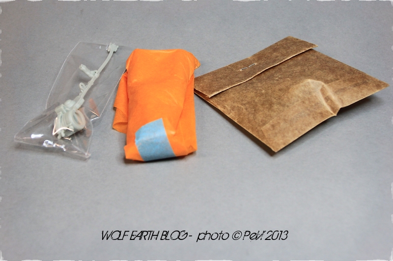 Každá figurka je balena v samostatné krabičce, která je zabalena do jemného papíru, pravděpodobně, aby nedošlo k poškození perfektního tisku na krabičce. Trup s dolními končetinami v jednom kuse je balen do jemného papíru, ostatní díly ( horní končetiny, hlava, helma a ostatní potom do papírového nebo igelitového sáčku). Z Japonska do Čech opět bez poškození. K zásilce byly přibaleny 4 nádherné "pohlednice" s vyobrazením již jmenovaných robotů. Nečekaný a příjemný bonus. Použitý material - středně tvrdý a opracovatelný matný šedý resin- ideální.